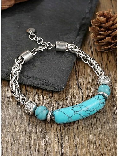 Pulsera bohemia para hombre de acero de titanio y piedra natural, pulsera de cadena con cuentas multicolor para vacaciones en la playa, atuendos casuales de verano y uso diario.