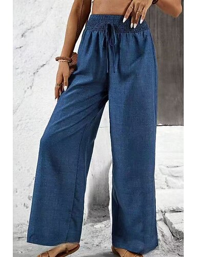 Mujer Perneras anchas Chinos Vacaciones Moda Ropa de calle Longitud total Alta cintura Plano Bolsillo Cintura elástica Confortable Comodidad Suave Elástico Exterior Calle Azul Piscina Verano