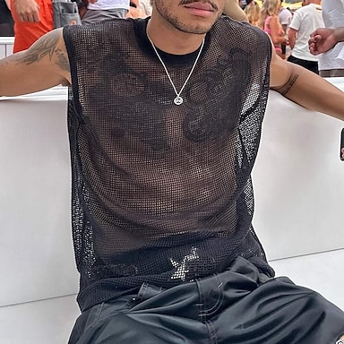 Hombre Camiseta sin mangas Camisetas Interiores Camisa sin mangas Sin Mangas Cuello redondo Verano Plano Moda Sensual Músculo Ahuecado Exterior Noche Gimnasia Negro Camiseta superior para hombre