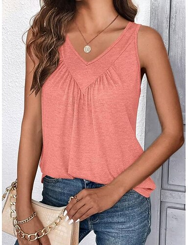 Mujer Camiseta sin mangas Frunce Plano Moda Elegante Clásico Sin Mangas Escote en Pico Tops regulares Diario Noche Fin de semana Negro Blanco Rosa Rojo Morado Verano Primavera