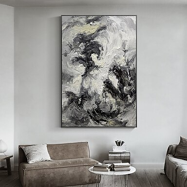 Pintura al óleo hecha a mano, lienzo, arte de pared, decoración, moderno, abstracto, blanco y negro para sala de estar, decoración del hogar, pintura enrollada sin marco y sin estirar