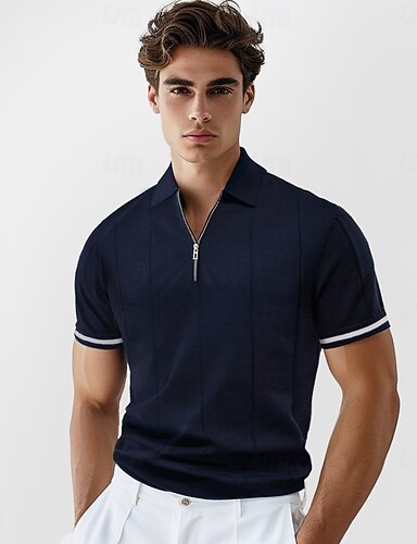 Hombre Polo polo de punto Formal Trabajo Cuello Vuelto Cremallera de un cuarto Manga Corta Color sólido Cerrar Primavera Gris oscuro Negro Blanco Azul Marino Caqui Gris Polo