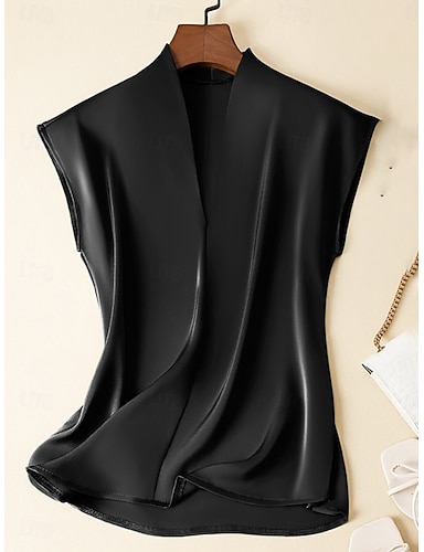 Mujer Top de satén Camiseta de satén Plano Elegante Moda Clásico Sin Mangas Escote en Pico Tops regulares Diario Noche Fin de semana Negro Marrón Verano Primavera
