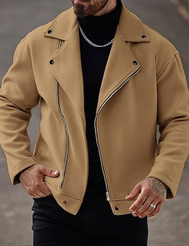 Hombre Chaqueta Chaqueta casual Exterior Vacaciones Templado Cremallera Bolsillo Otoño Invierno Plano Moda Ropa de calle Cuello Mao Regular Negro Verde Trébol Caqui Gris Chaquetas