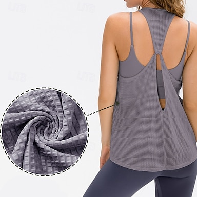 Mujer Color sólido Camiseta sin mangas Camiseta Fitness Holgado Elástico Reductor del Sudor Transpirable Tenis pepinillo Yoga Cuello Barco Camiseta Negro Azul Morado Ropa de tenis