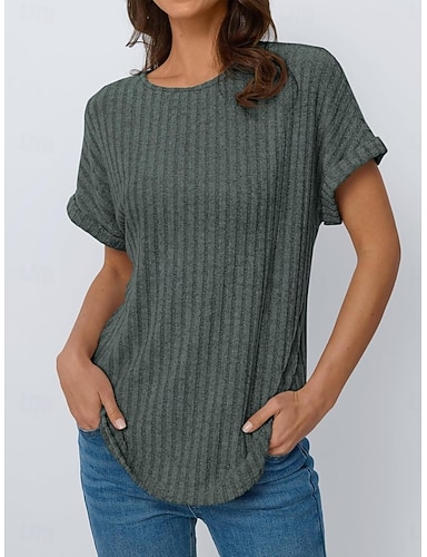 Mujer Camiseta Camiseta superior Plano Moda Elegante Clásico Manga Corta Cuello Barco Tops largos Diario Noche Fin de semana Rosa Vino Verde Trébol Gris Oscuro Albaricoque Verano Primavera