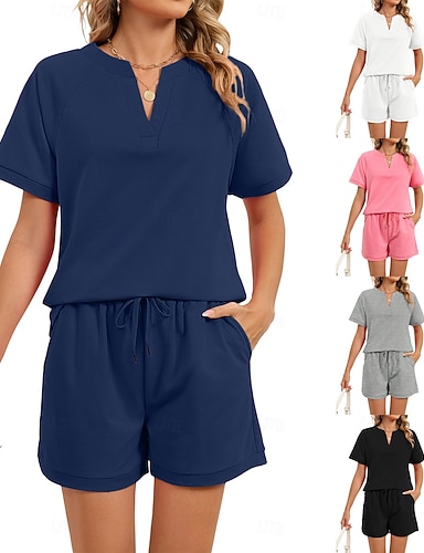 Mujer Conjuntos de pantalones cortos parte superior del bolero Manga Corta Escote en Pico Plano Correa Moda Ropa de calle Casual Diario Exterior Negro Blanco Rosa Verano Ajuste regular