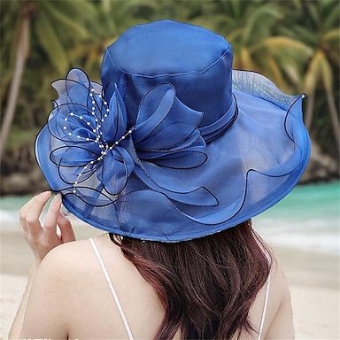 Sombreros Sombrero de Sol de Organza Boda Vacaciones Fiesta de Té Carrera de Caballos Cóctel Elegante Vintage Protección Solar Con Adorno Floral