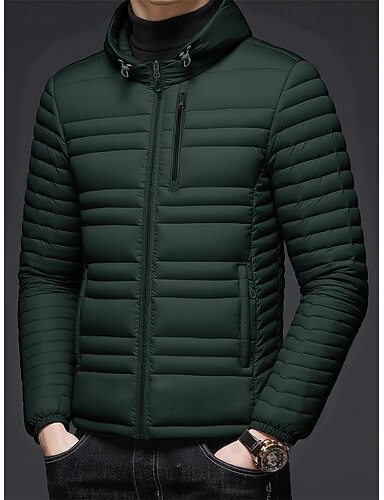 Hombre Abrigo de invierno Chaqueta acolchada Bolsillo Poliéster Vacaciones Ropa Cotidiana Cita Regular Moda Casual Cómodo Mantiene abrigado Invierno Color sólido/liso Negro Azul Piscina Verde Oscuro