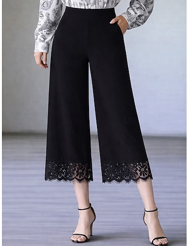 Mujer Fresco Chinos Moda Ropa de calle Moderno Medio corto Alta cintura Plano Encaje Retazos Confortable Suave Cómodo Microelástico Exterior Vacaciones Calle Negro Verano Primavera Otoño Ajuste