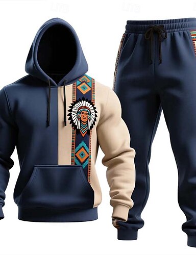 Hombre Tribal 2 piezas Conjuntos de sudaderas 3D Chándal Sudadera con capucha Manga Larga Pantalones largos Con Capucha Estilo Étnico Casual / Diario Ropa Deportiva Impresión 3D Primavera Otoño
