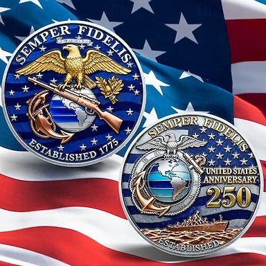 Moneda Conmemorativa del 250.º Aniversario del Cuerpo de Marines Monedas Coleccionables Monedas de Exhibición de Metal Duradero para Coleccionistas e Idea de Regalo Tema Militar Patriótico