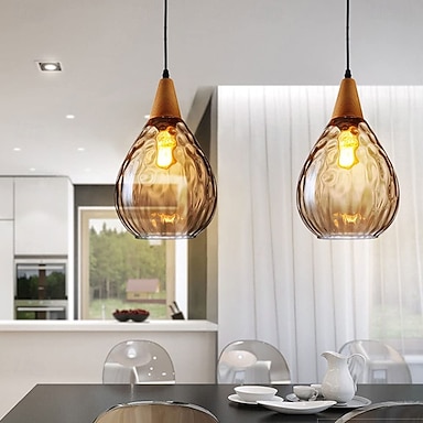Lámpara de araña LED, lámpara colgante vintage, lámpara colgante creativa de madera maciza y cristal, lámpara de araña ámbar de un solo cabezal para baño, comedor, almacén, sala de estar, pasillo,