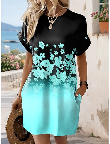 Mujer Mini vestido Vestido estilo camiseta Casual Diario Ajuste regular Ombre Floral Graphic Manga Corta Cuello Barco Azul Piscina Rosa Morado Verde Trébol Verano Primavera