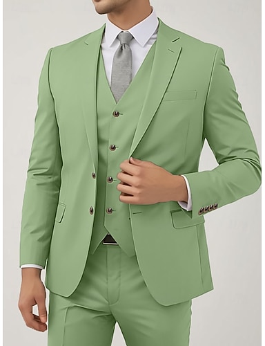 De los hombres Trajes boda en la playa Boda de primavera Salvia Primavera verano Traje Solapa de Pico Moda Formal Color sólido Estándar Juego de 3 piezas Recto 2 botones