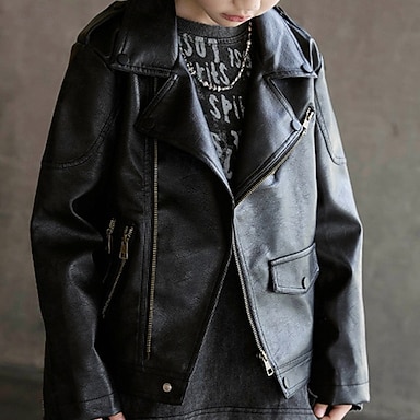 Niños Chico Chaqueta de cuero negro Chaqueta Ropa de calle Plano Manga Larga Cerrar IMPERMEABLE Paravientos: Abrigo Diario Moda Casual Negro Marrón Primavera Otoño 4-12 años