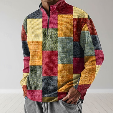 Hombre Plaid Sudadera Moda Diario Clásico Casual Manga Larga Escote Chino Cremallera de un cuarto Exterior Hogar Oficina Trabajo Azul Piscina Naranja Verde Trébol Cerrar Otoño Invierno Diseñador S M