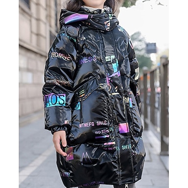 Niños Chica Chaqueta de plumas Chaqueta acolchada Letra Deportes Bolsillo Mantiene abrigado Paravientos: Exterior Abrigo Ropa de calle 4-12 años Invierno Azul Piscina Negro Gris