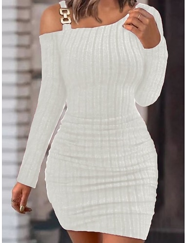 Mujer Vestido Midi Vestido blanco Vestido de graduación Vestido informal Corte Bodycon Moda Moderno Exterior Vacaciones Fiesta Ajuste regular Plano Manga Larga Hombros Caídos Negro Blanco Rosa Rojo