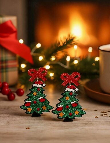 Pendientes navideños para mujer, de aleación y acrílico, con diseños festivos de renos, Papá Noel y árboles de Navidad; joyería navideña para fiestas y celebraciones de invierno.