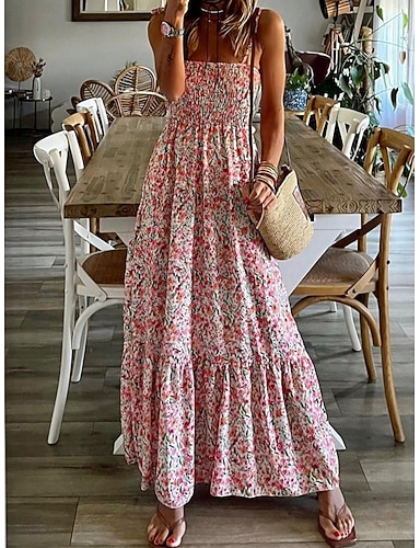 Mujer Vestido maxi Vestido de verano vestido de playa Vestido informal Vestido de flores Elegante Moda Moderno Exterior Vacaciones Noche Ajuste regular Floral Sin Mangas Correas Rosa Verano Primavera