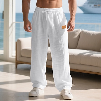 Hombre Pantalones de lino Pantalones Pantalones de verano Pantalones de playa Correa Cintura elástica Pierna recta Plano Comodidad Transpirable Longitud total Casual Diario Festivos Vacaciones Moda