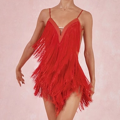 Baile Latino Vestido Borla Mujer Rendimiento Ropa Cotidiana Sin Mangas Otro