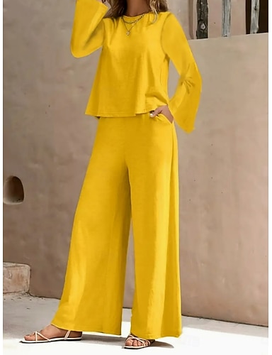 Mujer Conjuntos de pantalones parte superior del bolero Manga Larga Cuello Barco Plano Moda Ropa de calle Casual Diario Exterior Negro Amarillo Morado Primavera Holgado