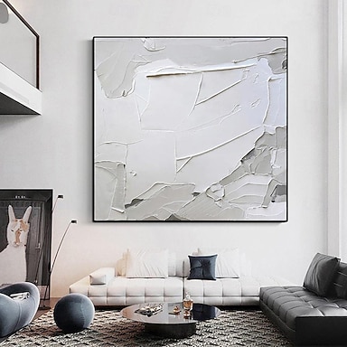 Arte de pared pintado a mano, pintura sobre lienzo, pintura blanca hecha a mano, pintura texturizada, arte abstracto moderno para sala de estar, arte de pared, arte minimalista, arte de lona grande