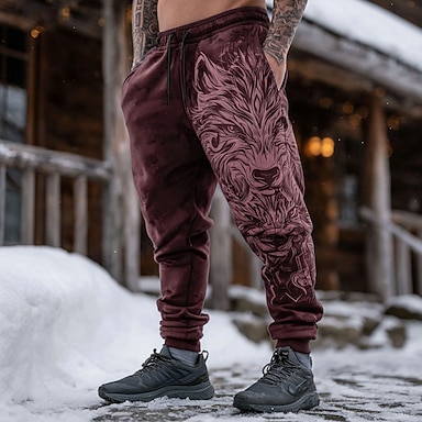 Hombre Animal Lobo Vikingo Pantalones de Deporte Persona que practica jogging Pantalones Media cintura Cintura elástica con cordón. retro de la vendimia Exterior Acampada y Senderismo Caza Pantalones