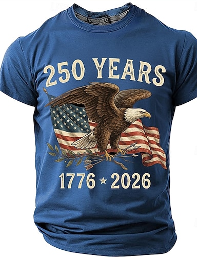250 aniversario 1776 2026 Camiseta patriótica para hombre con águila calva y bandera estadounidense, estilo vintage, orgullo de EE. UU., cuello redondo, manga corta, regalo para la celebración del 4