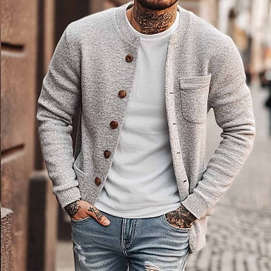 Hombre Pulóveres Chaqueta de Punto Estriado Tejer Tops regulares De Punto Plano Escote Redondo Vacaciones Moda Casual Ropa Cotidiana Ropa Otoño Invierno Gris S M L