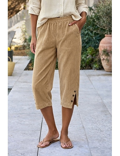 Mujer Pantalones Capri Pantalones Pantalones de Pana Pantalones de verano Vacaciones Moda Casual / Diario Medio corto Alta cintura Color sólido Plano Bolsillo Cintura elástica Comodidad Suave
