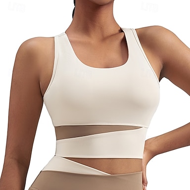 Mujer Sujeción Media Camiseta sin mangas acolchada Sujetador para correr Delgado Sujetador superior Acolchado Gimnasio Ejercicio Corriendo Ligero Elástico Transpirable Negro Blanco Amarillo Retazos