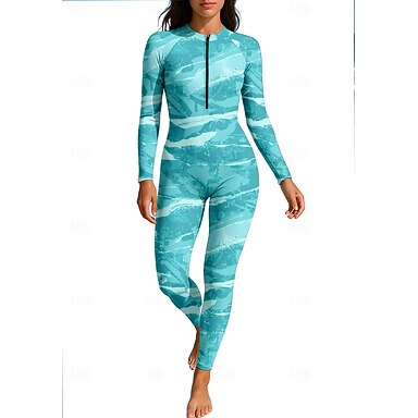 Mujer Estándar Camiseta Protección Solar Surf Traje de baño de cuerpo entero Traje de buceo Degradado Cremallera delantera UPF50+ Secado rápido Alta elasticidad Manga Larga Bañadores Surf Canoísmo