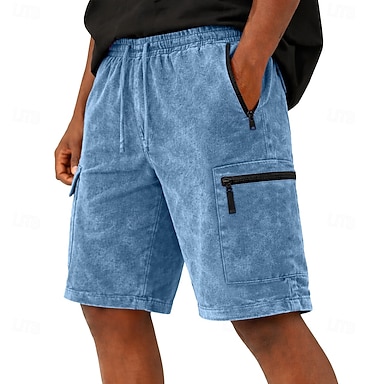 Hombre Pantalón corto Pantalones cortos casuales Pantalones cortos con lavado ácido Correa Cintura elástica Multi bolsillo Un Color Comodidad Transpirable Corto Diario Ropa de calle Vacaciones Moda