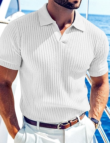 Hombre Top de punto acanalado Camisetas polo de golf Casual Trabajo Diseño Cuello polo acanalado Manga Corta Básico Moderno Color sólido Botones De Punto Primavera verano Todas las Temporadas Ajuste