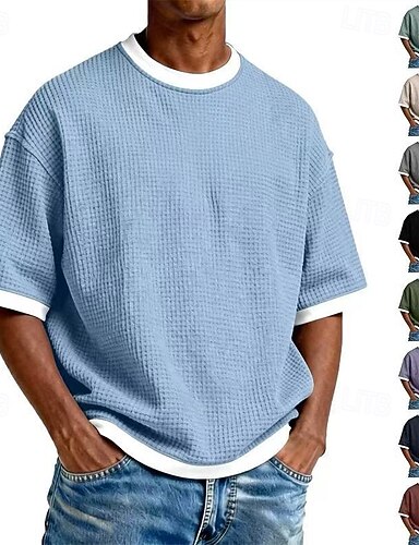 Hombre Camiseta con diseño de gofre Camiseta superior Manga Corta Cuello Barco Verano Primavera Todas las Temporadas Color sólido Moda Design Casual Bloque de Color Casual Diario Exterior Bleu Ciel