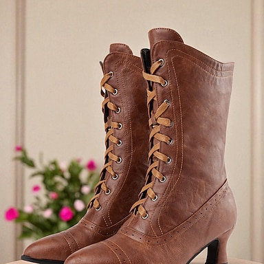 Botas victorianas de tacón medio con cordones para mujer, años 20: botines blancos estilo steampunk vintage para disfraces, recreaciones históricas y eventos Gatsby.