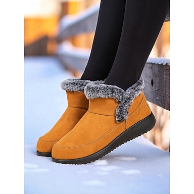 Botas de nieve de ante sintético para mujer: botines de invierno cálidos con forro de piel y puños plegables, calzado de exterior cómodo y antideslizante.