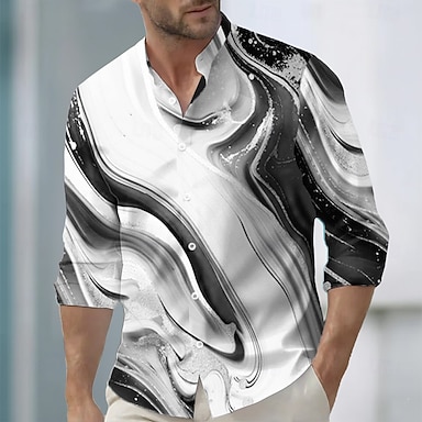 Hombre Geométrico Mármol Arte líquido abstracto Camisa Camisa de cuello alto Manga Larga Moda informal Uso Diario Festivos Primavera Otoño Collar mandarín Cuello alto Impresión 3D Camisas con botones