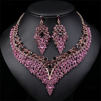 Juego de Joyas 2 Morado Legierung 1 Collar Pendientes Mujer Elegante Vintage Moda Estilo retro Clásico Conjunto de joyas Para Boda Fiesta Invitado a la boda