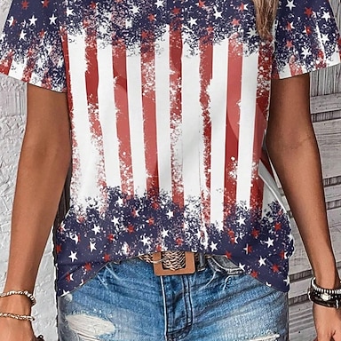 día de la independencia americana Mujer Camiseta Estampado Graphic Bandera Vintage Moda Casual Manga Corta Escote en Pico Tops regulares Diario Azul Piscina Blanco Rojo Verano Primavera