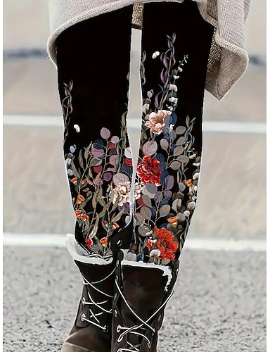 Mujer Pantalones Polainas Leggings cómodos Ropa de calle Casual Longitud total Alta cintura Floral Cintura elástica Estampado Transpirabilidad Cómodo Elástico Vacaciones Calle Ropa Cotidiana Rojo