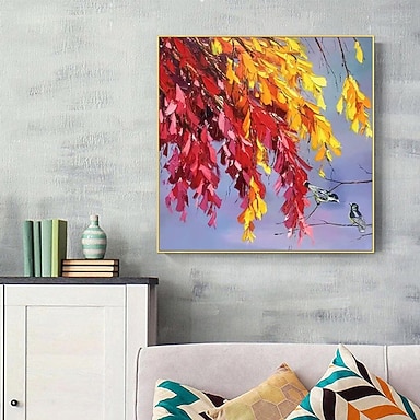 Pintura al óleo hecha a mano, lienzo, decoración de arte de la pared, pintura abstracta de plantas, hojas de sauce coloridas para decoración del hogar, pintura enrollada sin marco sin estirar