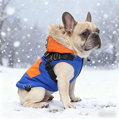 Abrigo para perros pequeños y medianos, impermeable, chaqueta de invierno con arnés, abrigo para cachorros para clima frío, chaleco reflectante para mascotas, cálido forro polar, traje de nieve para
