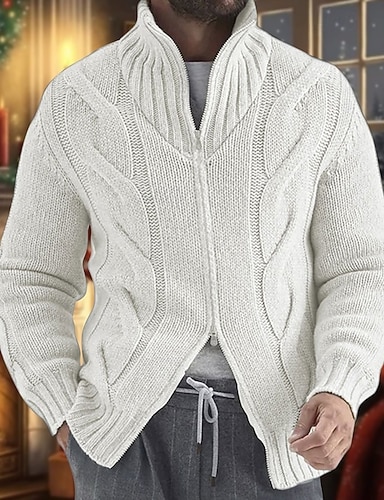 Hombre Suéteres de Navidad suéter navideño Chaqueta de Punto Jersey con cremallera Suéter recortado Cable Tejer Tops regulares De Punto Cosecha Plano Escote Chino Calentadores Contemporáneo moderno
