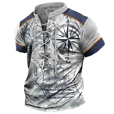 Hombre Camiseta Graphic Ancla Brújula Escote Chino Ropa Impresión 3D Diario Deportes Noche Manga Corta Acordonado Estampado Poliéster Vintage Moda Design