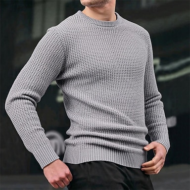 Hombre Suéter de punto Estriado Tejer Tops regulares De Punto Estampado Cuello Barco Moda Básico Vacaciones Ropa Cotidiana Ropa Otoño Invierno Gris S M L