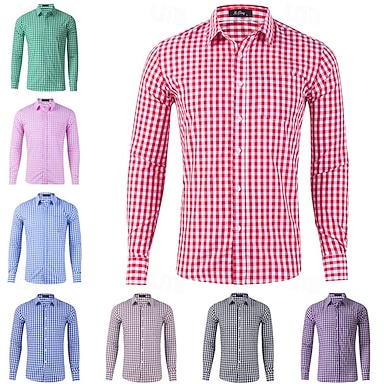 Hombre Camisa Camisa para Vestido Camisa casual Comprobar camisa Abotonar la camisa Negro Rosa Rojo Morado Verde Trébol Manga Larga A cuadros Diseño Negocio Diario Ropa Mezcla de Algodón Moda Casual